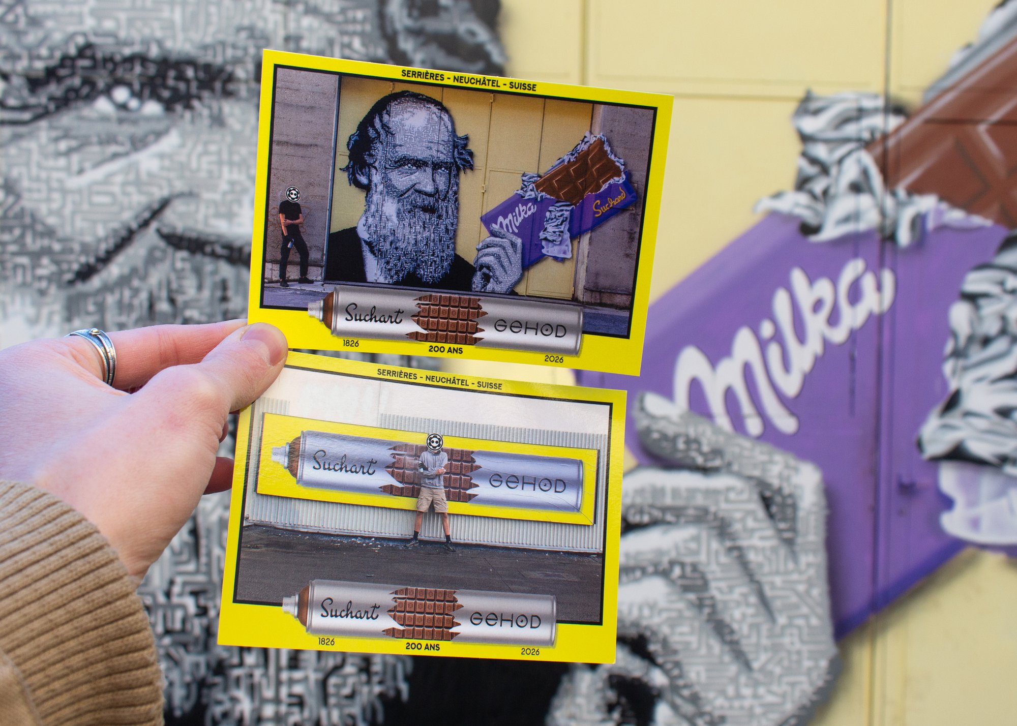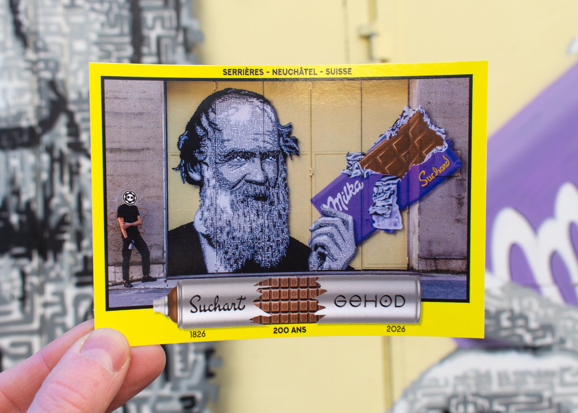 Fondées en 1826 à Neuchâtel - Serrières, les usines Suchard ont marqué à tout jamais l’histoire chocolatière et industrielle de Suisse. En 2026, deux cents ans plus tard, les bâtiments du complexe en friche se dressent encore, silencieux et abandonnés, témoins d’un passé gourmand et glorieux. Un ouvrier et artiste demeure encore à travailler en ces murs: il a réinventé les espaces du lieu pour les transformer en une usine d’art urbain, où l'odeur des aérosols a remplacée celle du cacao et où l’imaginaire a primé sur les machines...